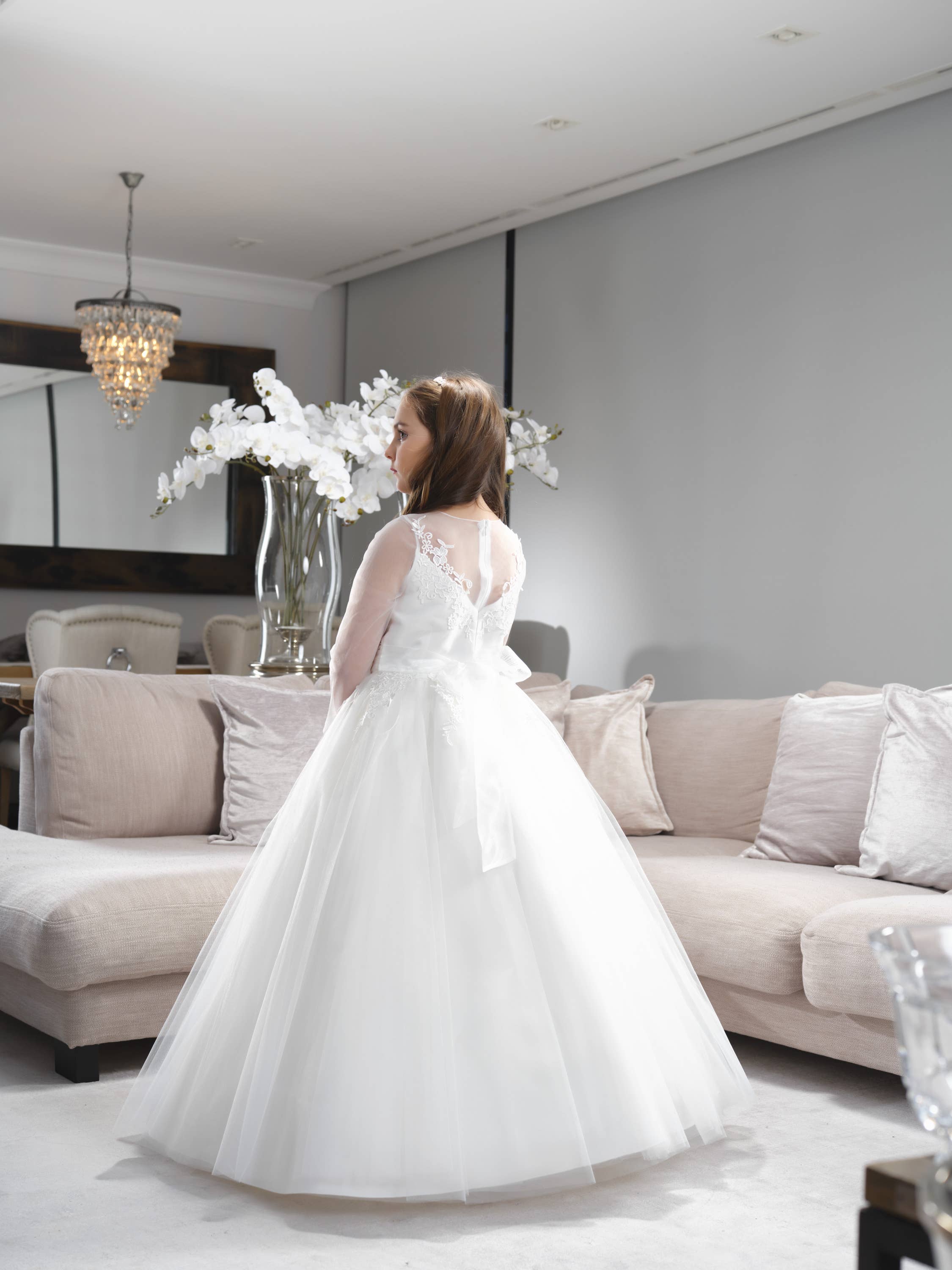 Stunning girls dress for first communion and those special occasions. Designed to high standard, made from quality textiles and with handmade details. Please check sizes and measurements above. Products delivered in recycled packing and on hangers.